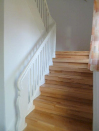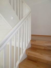 Treppenrenovierung von Stufen und Geländer << zurück Treppenvielfalt VorherNachher alte Wangentreppe mit Holzstufen belegt << zurück Treppenvielfalt