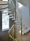 Transparentes Glas in Verbindung mit weißer Holzwange und dunkel gebeizten Stufen,